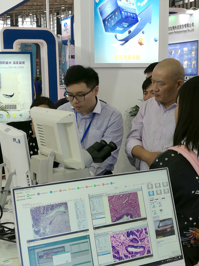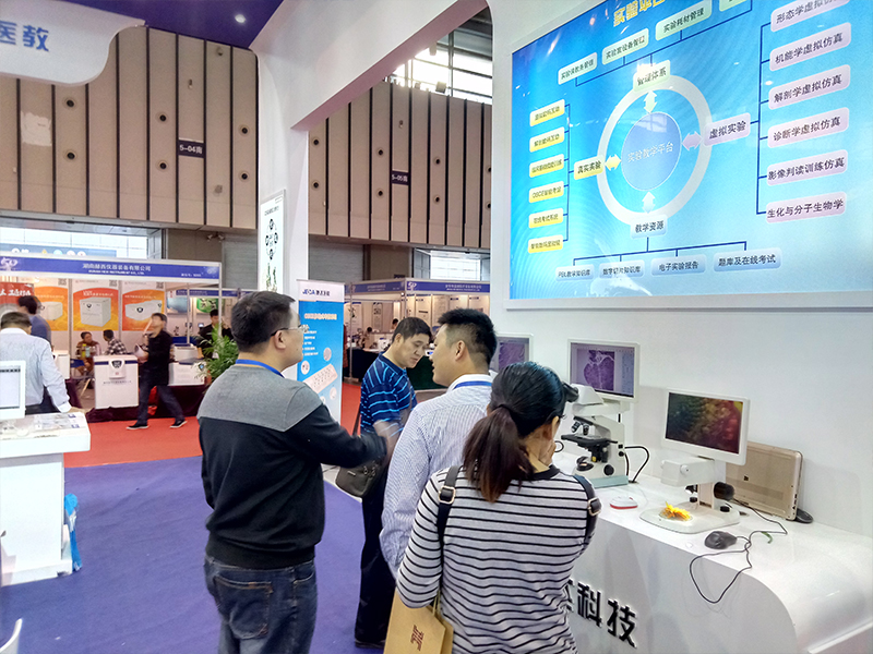 在这次会议上我司展出的产品有数码互动教学实验系统、数字切片知识库系统、诊断学虚拟仿真、形态学虚拟仿真、临床思维训练系统、中医临床思维训练系统、临床能力训练与考核系统等。各位参会嘉宾和专家在经过工作人员的介绍了解后,对捷达完善的体系以及专业的产品表示出了关注和认同。